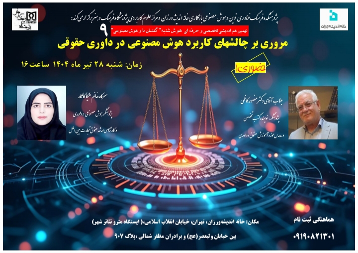 هوش شنبه نهم: مروری بر چالشهای کاربرد هوش مصنوعی در داوری حقوقی روز شنبه ۲۸ تیرماه ۱۴۰۴ در خانه اندیشه ورزان برگزار می شود.